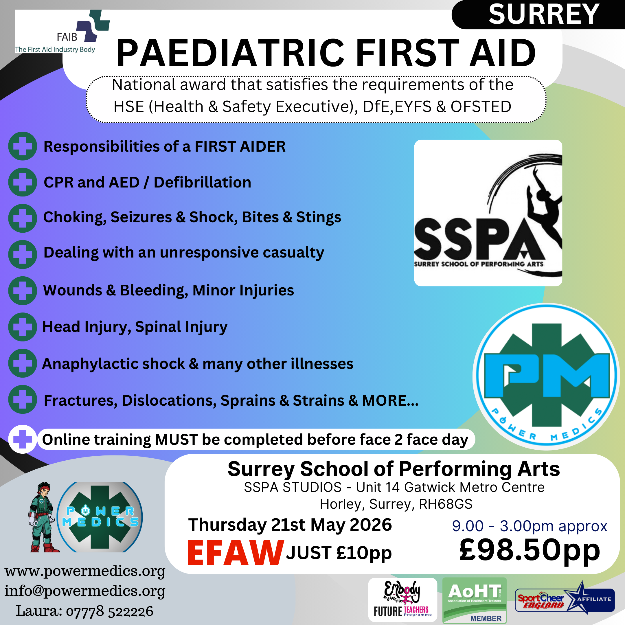 | EFAW | For those also responsible for Adults (Staff / Clients) Add Emergency First Aid for just £10. Click here to Add. |